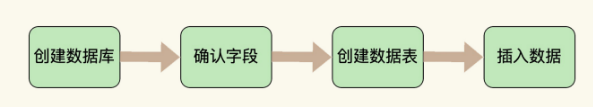 那么,怎样才能把用户各种经营相关的、纷繁复杂的数据,有序、高效地存储起来呢? 在 MySQL 中, 一个完整的数据存储过程总共有 4 步,分别是创建数据库、确认字段、创建数据表、插入数据。